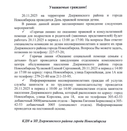 20.11.2025 на территории Дзержинского района и города Новосибирска проводится День правовой помощи детям